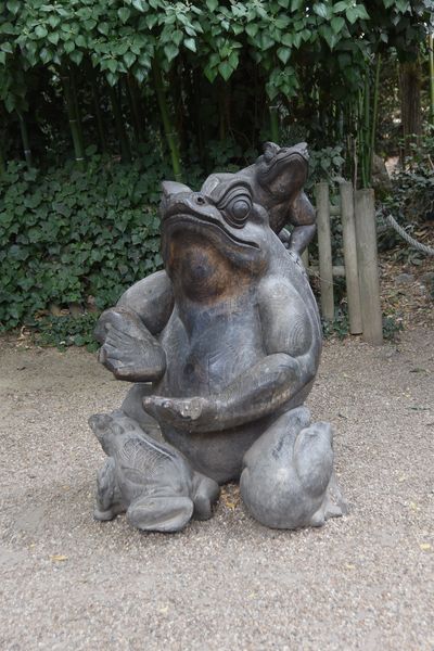 Sculpture monumentale (bois de séquoia) réalisée sur place par Omar Sekou, artiste nigérian. |
