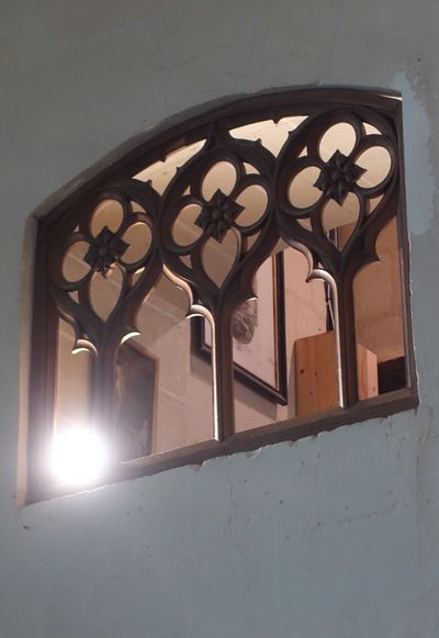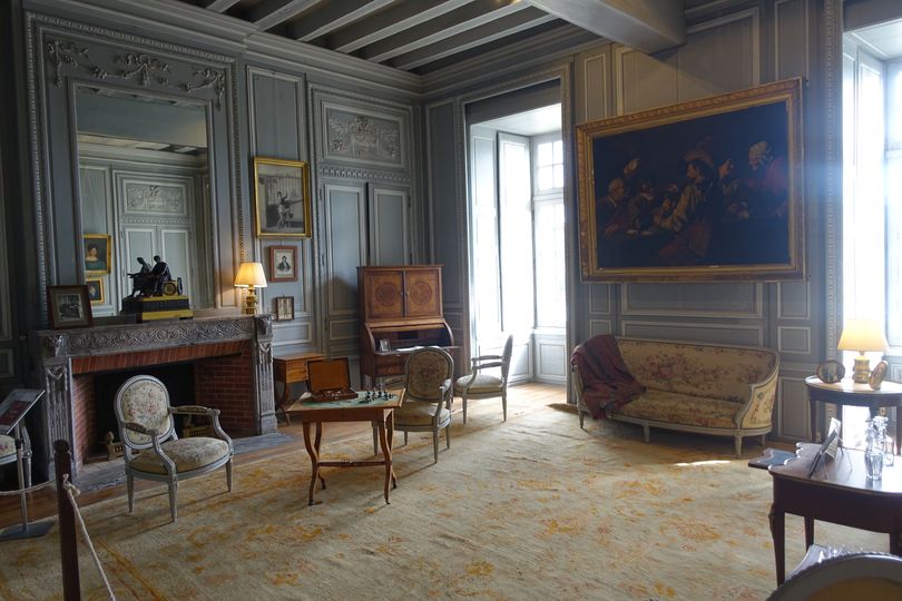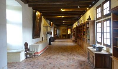 Loggia, au bout de la bibliothèque, d'où le seigneur pouvait assister à la messe dans la chapelle Sainte-Anne, en contrebas. |
