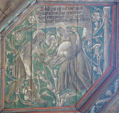 L'un des dessus de porte représentant l'une des quatre saisons. |