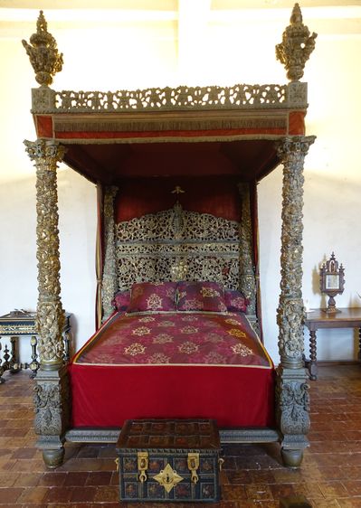 Lit avec dais d'origine italienne datant du XVIe siècle, partie inférieur du XIXe siècle. |