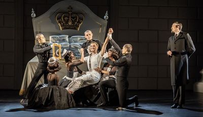 James Lovell (le prince) et la compagnie.Photo Johan Persson. |