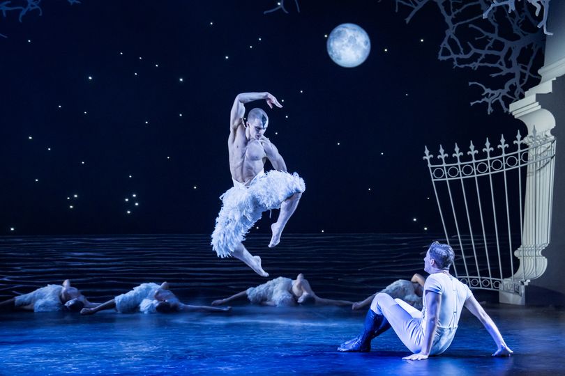 Jackson Fisch (le cygne) et Stephen Murray (le prince) et la compagnie. Photo Johan Persson. |