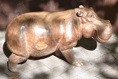 Sculpture monumentale (bois de séquoia) réalisée sur place par Omar Sekou, artiste nigérian. |