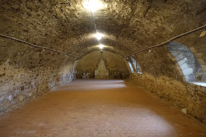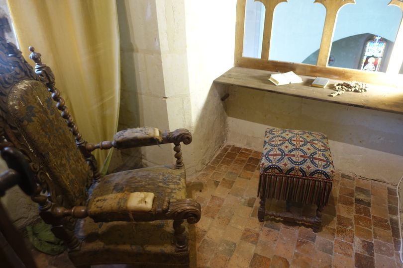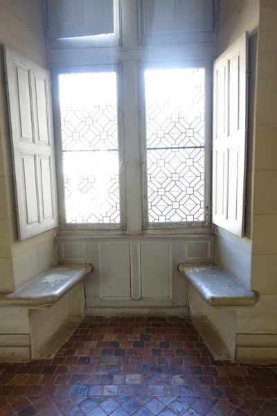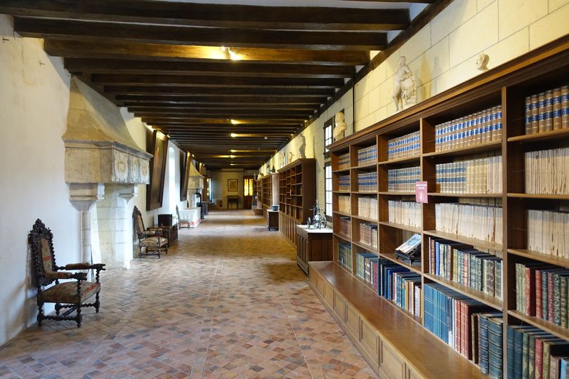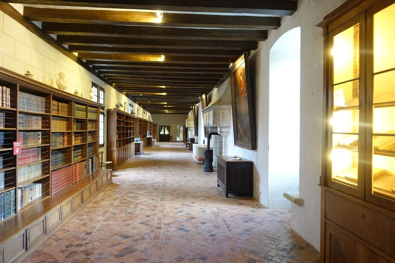 Loggia, au bout de la bibliothèque, d'où le seigneur pouvait assister à la messe dans la chapelle Sainte-Anne, en contrebas. |