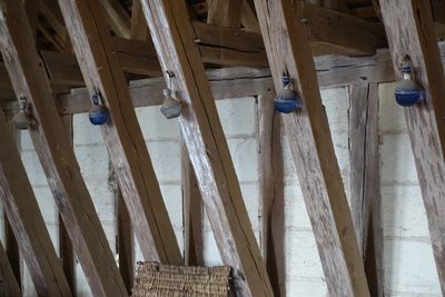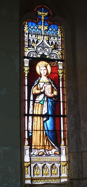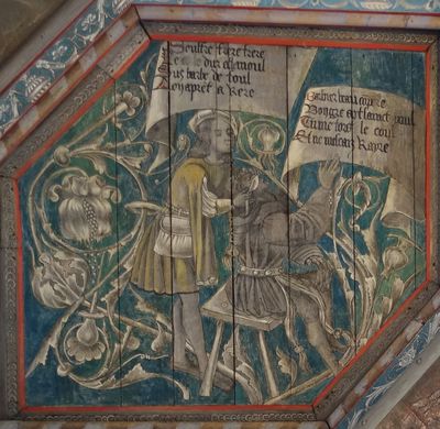 Vue d'ensemble (côté droit en entrant) avec charpente en forme de carène de navire renversée. |