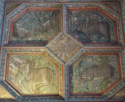 Vue d'ensemble avec le plafond à caissons (détails et commentaires ci-dessous) |