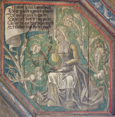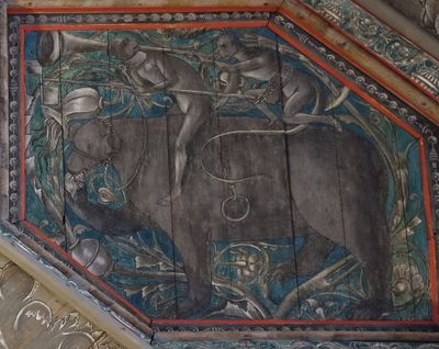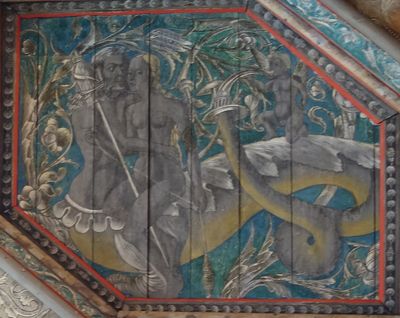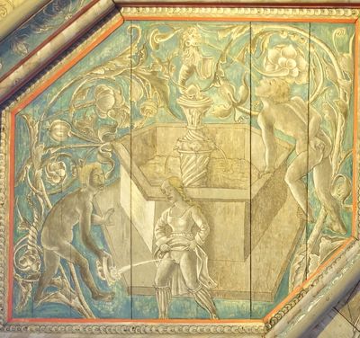 L'un des dessus de porte représentant l'une des quatre saisons. |