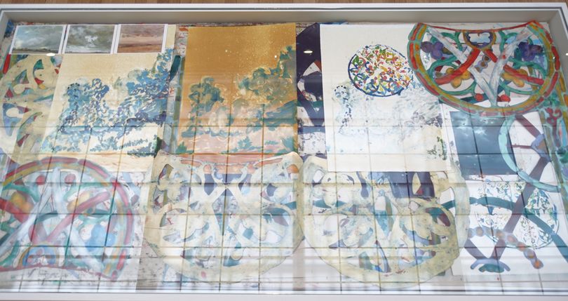 Claire Tabouret. Maquette, détail de la baie de la chapelle Saint-Denys. Encre sur papier. © Claire Tabouret / photo Claire Dorn, 2025. |