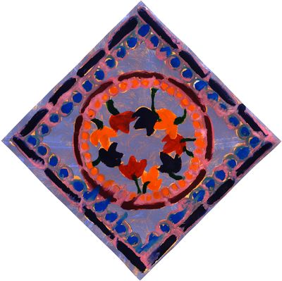 Claire Tabouret. Maquette, détail de la baie de la chapelle Sainte-Geneviève, 2025. Encre sur papier, 78,3 x 73,6 cm. © Claire Tabouret / photo Marten Elder, 2025. |
