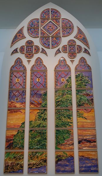 Ce vitrail évoque un choc spirituel, un écho divin vibrant du haut vers le bas, comme une onde lumineuse. Inspirée par Fra Angelico et le verset «la voix des grandes eaux», j'ai travaillé les couleurs comme une diffraction, une intensité sonore devenue lumière. Le style est figuratif mais tend vers une abstraction émotionnelle. Le bruit devient métaphore d'un Dieu invisible, de la transcendance dans le tumulte.