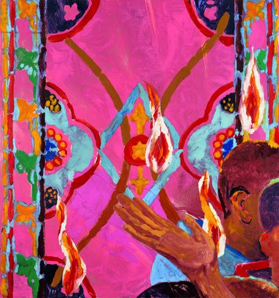 Claire Tabouret. Maquette, détail de la baie de la chapelle Saint-Vincent-de-Paul. Encre sur papier, 78 x 74,1 cm. © Claire Tabouret / photo Marten Elder, 2025. |