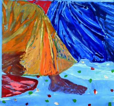 Claire Tabouret. Esquisse. Étude pour la baie de la chapelle Sainte-Geneviève, 2024. Encre et acrylique sur papier, 199,7 x 108 cm. |