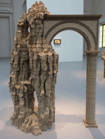 Dans cette exposition, ces œuvres-lieux fictionnelles sont parfois reliées par des ponts, parfois par un point de vue depuis un escalier où un belvédère. Ici une arche, un nymphée ou une forêt s'érigent dans l'espace et invitent le visiteur à faire surgir son propre imaginaire.