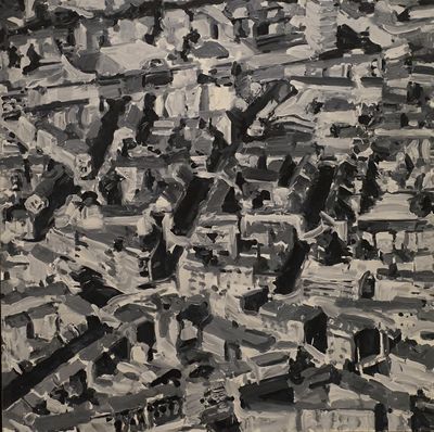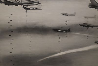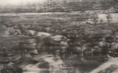 Richter les a recadrées pour les ajuster au format des toiles et les a ensuite projetées dans l'intention de les reproduire. Cependant, insatisfait du résultat, il a tout recouvert de peinture. À l’utilisation prédominante du noir, du blanc et du gris, se mêlent des touches de vert et de rouge.