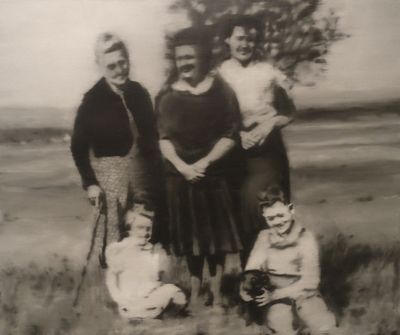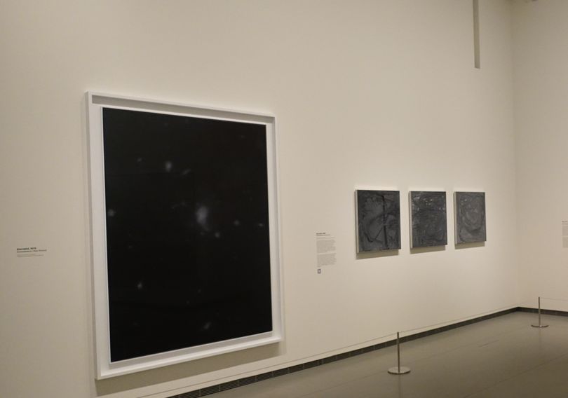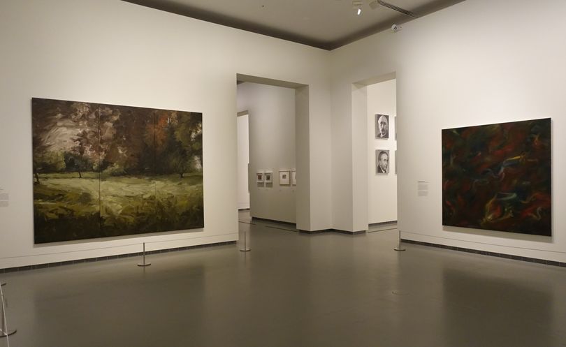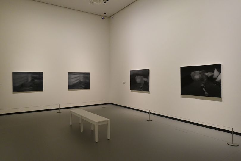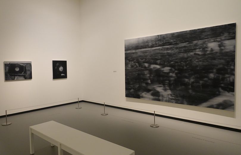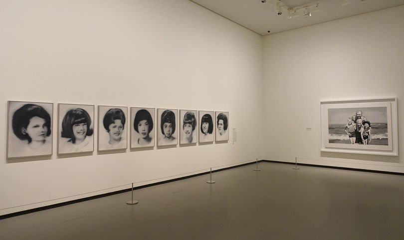 Les œuvres les plus anciennes de l'exposition sont basées sur des photographies tirées de journaux ou de magazines et, comme nous le savons aujourd’hui, sur des photos de sa famille que Richter avait laissée en RDA. La plupart des images présentent un flou caractéristique, obtenu par le glissement du pinceau sur la surface peinte encore humide. Ce procédé projette l’image dans le passé à travers la mémoire tout en propulsant l’image vers l’abstraction.
