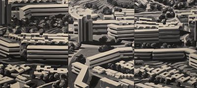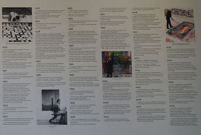 Depuis 1968, Gerhard Richter a créé de nombreuses œuvres de grand format pour l’espace public. Ces projets, réalisés à l'initiative de commanditaires publics ou privés aux attentes desquels il doit se confronter, se distinguent des travaux d'atelier dont il a la pleine maîtrise. Certaines propositions de l’artiste - comme celle de 1972 pour les Jeux olympiques de Munich - furent refusées et donc jamais concrétisées; d’autres, comme les six Losanges destinés au sanctuaire de San Giovanni Rotondo, trouvèrent finalement un emplacement pérenne dans un musée.
