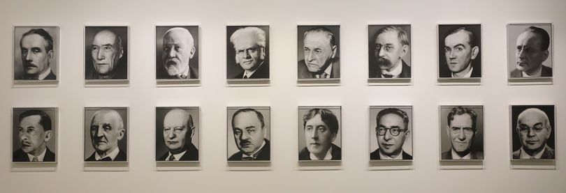 la Biennale de Venise de 1972. Il conçoit une installation spécifique composée de 48 portraits de scientifiques, d'écrivains, de compositeurs et de philosophes. La sélection, tirée d'une encyclopédie, inclut délibérément des personnalités dont Richter ne connaît pas le travail, et il exclut les artistes plasticiens et des intellectuels célèbres tels que Sigmund Freud, car il souhaite atteindre à une certaine neutralité. Pour réaliser cette série, Richter s'est fixé comme objectif de peindre deux portraits par jour, un «travail» comme n'importe quelle autre activité manuelle. Les portraits étaient accrochés au-dessus de la ligne du regard dans la salle centrale du Pavillon allemand. Richter s'intéressait alors à la manière de présenter les images en lien avec l'architecture, comme en témoignent les nombreuses études de cette période présentes dans l'album Atlas.