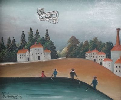 Ces images populaires rencontrent leur public et lui permettent de survivre financièrement. Elles constituent le corpus le plus important de son œuvre, et le plus représenté dans la collection du marchand Paul Guillaume. On y croise les pêcheurs à la ligne et les femmes chapeautées des images d’Épinal dans des points de vue où se décline la modernité. Rousseau s'inspire de ses propres observations lorsqu'il parcourt les environs de Paris, alors en pleine mutation, et rend hommage aux premiers vols du biplan des frères Wright en 1908.