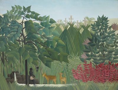 Alors que ses contemporains le croient imprégné des souvenirs d’un voyage au Mexique durant son service militaire, Rousseau reconnaît en 1910 n’avoir en réalité jamais quitté la France. Ses jungles puisent aux sources d’une imagerie exotique populaire, diffusée par les Expositions universelles où s'affirme l'empire colonial français au tournant du siècle. Rousseau s'inspire tout autant des illustrations de presse, tributaires de cette imagerie, que des croquis qu’il réalise dans les galeries du Muséum national d'Histoire naturelle et les serres du Jardin des Plantes, où il observe animaux naturalisés et plantes tropicales.