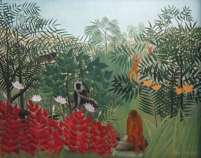Henri Rousseau (1844-1910). Forêt tropicale avec singes, 1910. Huile sur toile. Washington, National Gallery of Art. John Hay Whitnev Collection. |