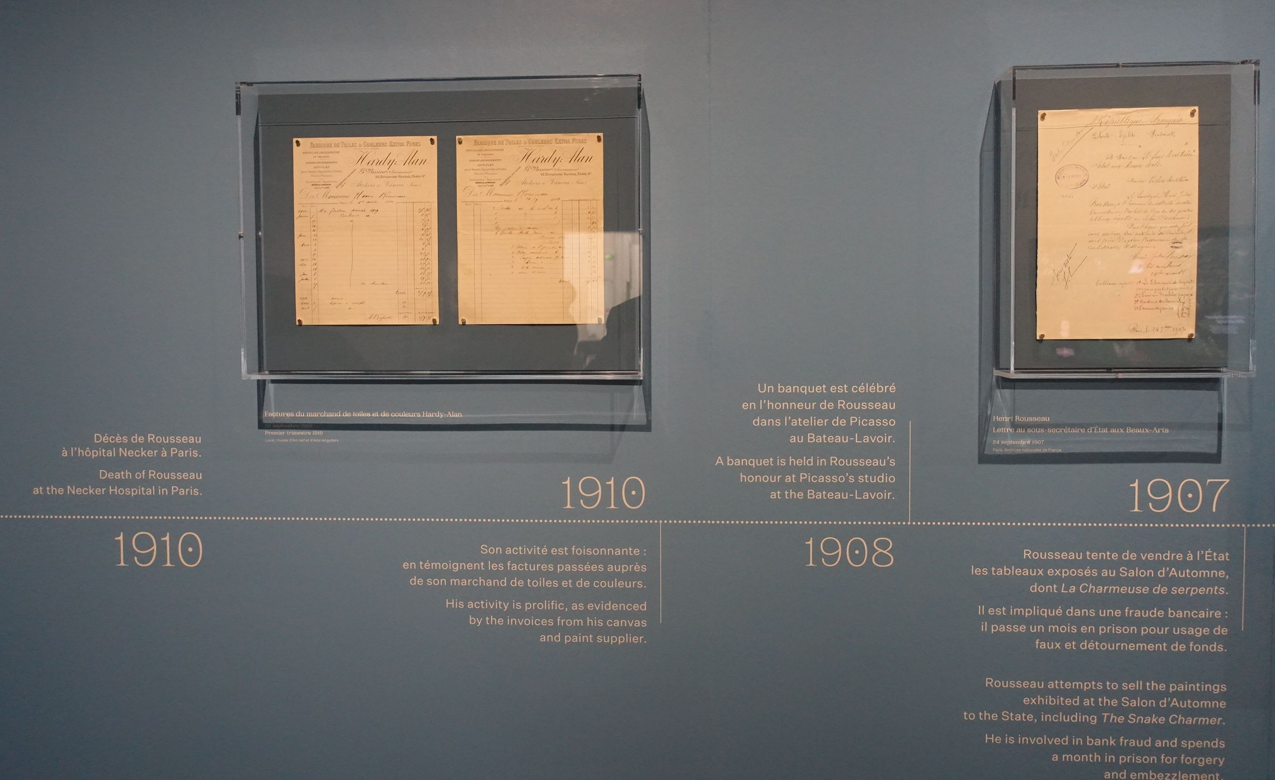 Réunies pour la première fois, ces toiles justifient leur statut de chefs-d'œuvre par leur originalité, leur variété et leur caractère unique dans l'œuvre de Rousseau. Réalisées à différents moments de sa carrière, elles connaissent chacune une trajectoire singulière. Mauvaise surprise, acquise par l’artiste Gabriële Buffet puis par le Dr Albert Barnes, est aujourd’hui l’un des fleurons de sa fondation. La Charmeuse de serpents intègre la prestigieuse collection de Jacques Doucet, aux côtés des Demoiselles d'Avignon de Picasso, dont Rousseau disait: «Nous sommes les deux plus grands, [lui] dans le genre égyptien, moi dans le genre moderne.» La Bohémienne endormie, quant à elle, se trouve aujourd’hui au Museum of Modern Art de New York, après avoir déchaîné les enchères à Drouot en 1926. Elles donnent ainsi raison à l'ambition de Rousseau qui affirmait à sa fille, sur le ton du défi: «Tu as bien tort de ne pas aimer ma peinture, tu en auras un jour pour plus de cent mille francs!»