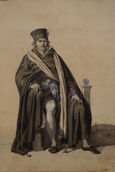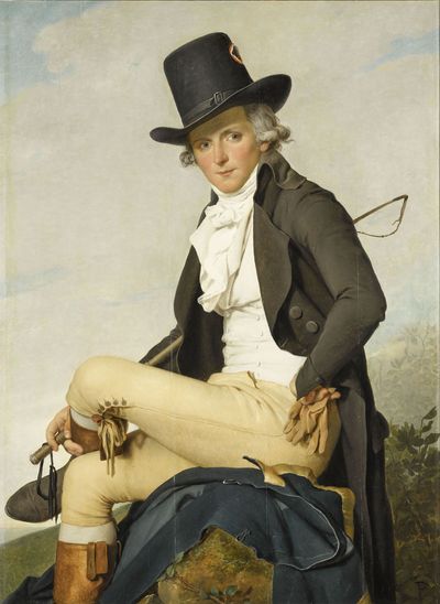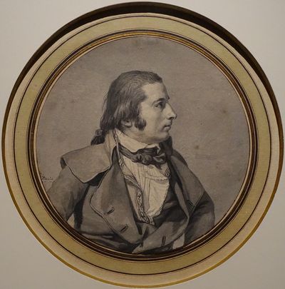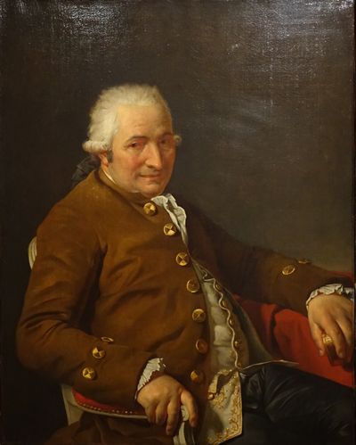Financier, le modèle est aussi un collectionneur et mécène avisé, actif dans sa région natale du Languedoc. Ses encouragements aux artistes lui valent d’être élu en 1786 associé honoraire libre de l’Académie royale de peinture et de sculpture à Paris - distinction réservée aux hommes de lettres et amateurs proches du milieu artistique. Cet événement suscite probablement la commande de ce portrait, resté inachevé dans l’atelier de David. |