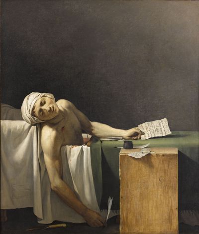 s'émanciper en tant que citoyen. Né sous l’Ancien Régime, acteur de premier plan sous la Révolution, servant Napoléon et finissant exilé sous la Restauration, il est convaincu que l’art participe à transformer le monde. Le choix classique qui est le sien est une façon de donner une forme aux désordres et à la violence que peut entraîner une société nouvelle en train de naître. Marat assassiné en est le chef-d'œuvre.
