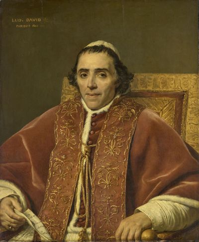 Jacques-Louis David. Portrait du pape Pie VII (1742-1823), 1805. Huile sur bois. Paris, musée du Louvre, département des Peintures. © GrandPalaisRmn (musée du Louvre) / Adrien Didierjean.