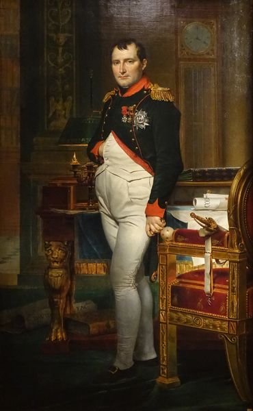 Jacques-Louis David. Portrait de l’empereur Napoléon 1er dans son cabinet de travail, en tenue de colonel des chasseurs à cheval, 1812. Huile sur toile. Fontainebleau, musée national du Château.