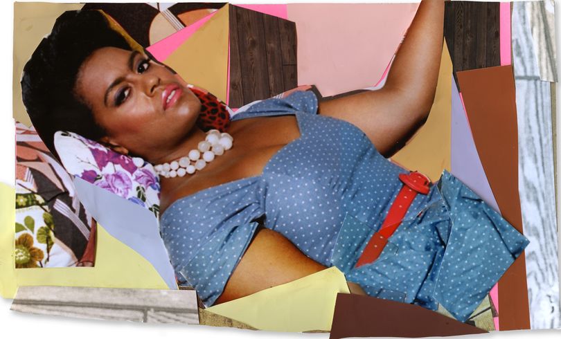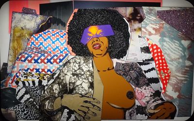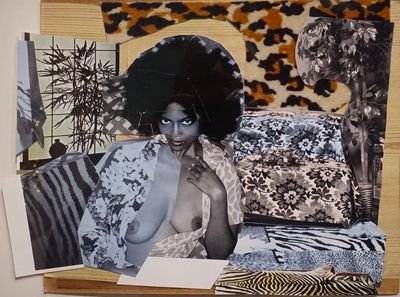 Mickalene Thomas s’inspire aussi de l’érotisme noir présenté dans les magazines populaires des années 1970, en particulier la revue Jet, avec ses pages centrales sur «La Beauté de la semaine» et ses calendriers de pin-up. On retrouve également dans son choix d’archives des publications issues du magazine parisien Nus Exotiques. Utilisant le collage pour réinterpréter visuellement ces documents, elle nous encourage à réfléchir aux évolutions et aux persistances des représentations visuelles des femmes noires à travers le temps.