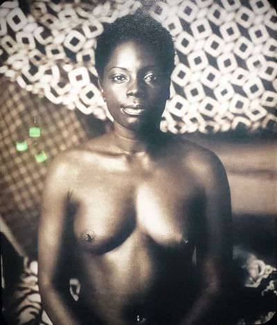 Cette photographie est liée à Sleep: Deux femmes noires (exposée par ailleurs), qui représente deux personnages enlacés dans un paysage. Ces deux œuvres font partie de la réinterprétation par Thomas du tableau Le Sommeil (1866) du peintre français du XIXe siècle Gustave Courbet, qui représente un couple de lesbiennes enlacées. Thomas a travaillé avec deux modèles, Marie et Melody, pour créer sa version du tableau de Courbet. Ici, Marie est représentée seule. Le polaroid sépia et le cadre métallique doré évoquent le milieu du XIXe siècle, suggérant à la fois la période du tableau de Courbet, mais aussi la photographie ethnographique des esclaves aux États-Unis. |