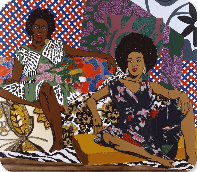Mickalene Thomas. Sleep: Deux femmes noires (sic), 2012. Strass, peinture acrylique, huile sur toile montée