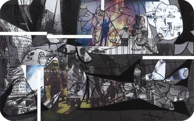 L'œuvre est recouverte d'images de l'œuvre Guernica (1937) de Picasso, devenue un symbole de la dénonciation des violences guerrières, réalisée en réponse immédiate au bombardement par les forces fascistes de la ville basque de Guernica pendant la guerre civile espagnole. En tissant un lien entre ces événements, l'artiste souligne les échos intergénérationnels entre les activistes et la lutte continue pour les droits civiques et la justice. |