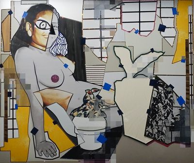Mickalene Thomas. Celie, 2016. Sérigraphique et peinture acrylique sur miroir acrylique, monté sur panneau de bois, 152,4 x 181,88 cm. Collection privée. |