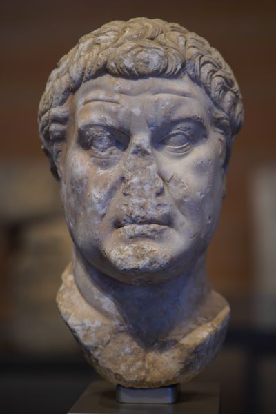 Portrait présumé de Jules César. Milieu du Ier siècle avant J.-C. Marbre du Dokimeion (Asie Mineure), 39,8 x 29 x 19,2 cm. Arles, Musée départemental Arles antique.