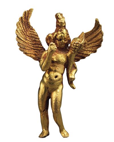Boucle d'oreille en forme d'Éros-Harpocrate, Ier siècle avant J.-C. Or, fonte pleine, 3,9 x 2,7 x 1,3 cm. Suisse, Genève, Fondation Gandur pour l’Art. |