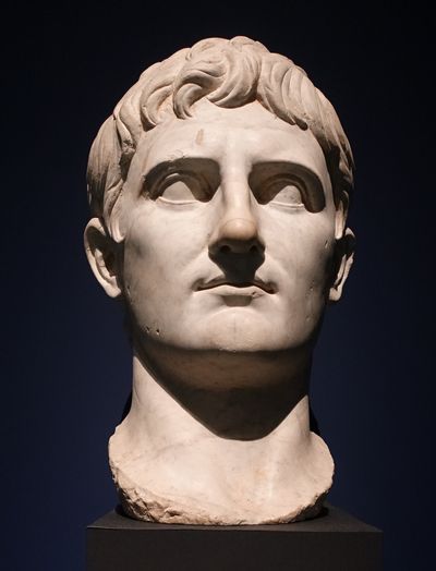 Portrait d'Auguste. Époque romaine, fin du Ier siècle av. J.-C. - Ier siècle apr. J.-C. Marbre de Luni, 53 cm. Vatican, musées du Vatican. |