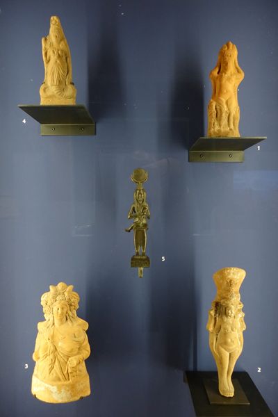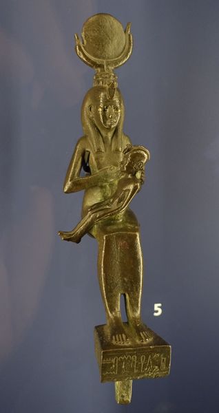 Figurine d'Isis allaitant Horus l'enfant. Basse Époque, 664-332 av. J.-C. Égypte, alliage cuivreux et placage d'or. Paris, musée du Louvre, département des Antiquités égyptiennes. |