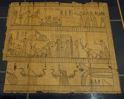 Papyrus funéraire. Fac-similé. Époque ptolémaïque. Papyrus. Paris, musée du Louvre, département des Antiquités égyptiennes. |