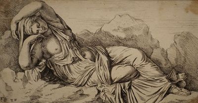François Perrier (Pontarlier, 1594 - Paris, 1649). Segmenta nobilium signorum et statuarum [Les Statues antiques de Rome], François de Poilly, Paris, 1638, planche 88: La Cléopâtre de Vatican. Estampe sur papier, gravure à l'eau-forte. Rennes, musée des Beaux-Arts.