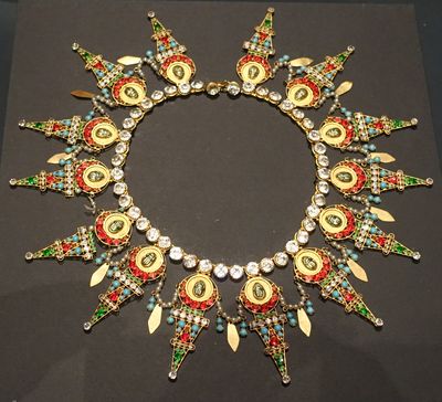 Théophile Thomas (Auxerre, 1846 - Ecouen, 1916). Collier pectoral et pagne de scène créés pour Sarah Bernhardt dans «Cléopâtre», 1890. Pièce de Victorien Sardou, créée le 23 octobre 1890 au Théâtre de la Porte Saint-Martin, Paris.