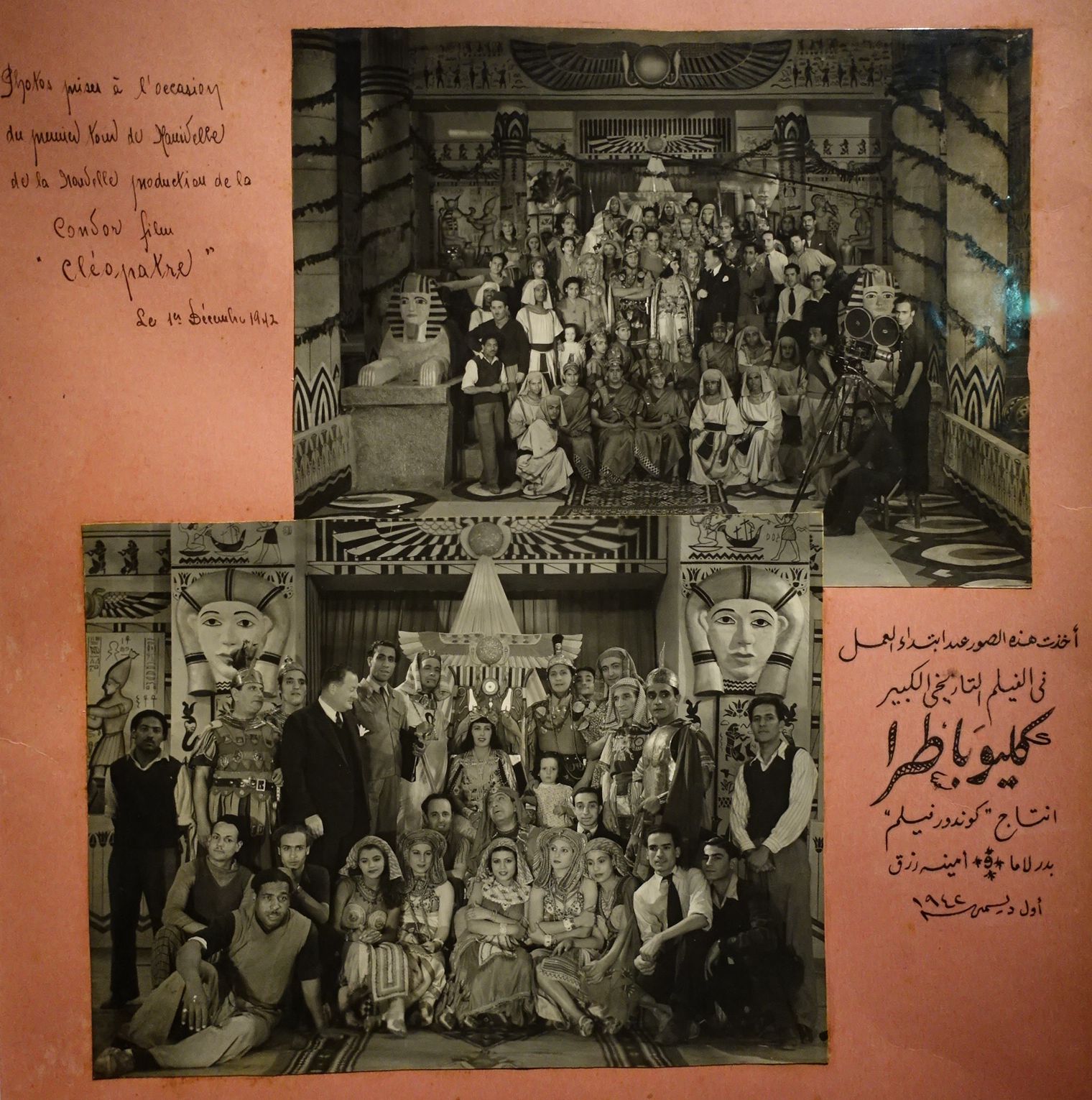 Amina Rizk et Badr Lama dans Cleopatra, 1943. Film d'Ibrahim Lama (Chili, 1904 - Égypte, 1953). Photographies argentiques, dont deux contrecollées sur du papier cartonné. Condor Film Company, Le Caire. Alexandrie, Wekalat Behna.