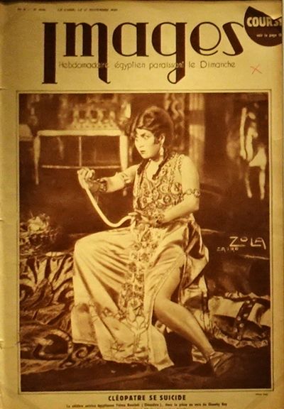 Couverture de la revue Images avec Fatma Rouchdi en Cléopâtre, n° 9, 17 novembre 1929. Hebdomadaire égyptien. Alexandrie, Archives Centre d'Études Alexandrines. |