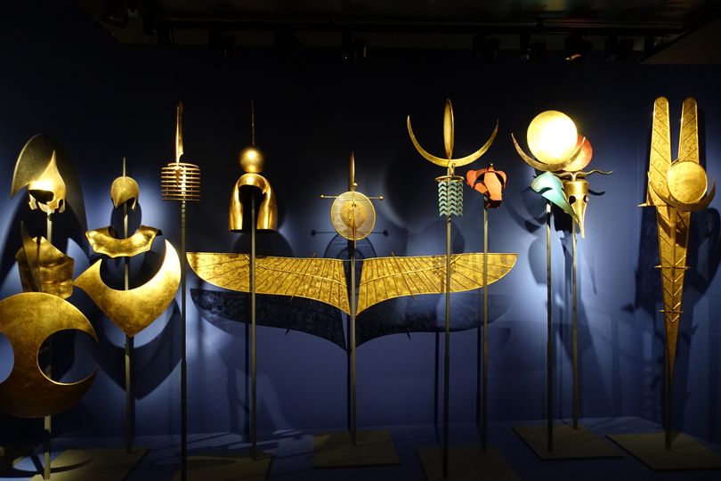 Arnaldo Pomodoro (Morciano di Romagna, né en 1926). Costumes de scène pour l'opéra La Passione di Cleopatra, 1989. Réalisé par Gianni Versace (Reggio de Calabre, 1946 - Miami Beach, 1997).