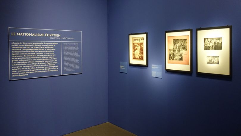 À la suite des découvertes sensationnelles du buste de Nefertiti en 1912, envoyé à Berlin où il demeure, puis de la tombe de Toutankhamon en 1922 par Howard Carter, archéologue britannique, l'antiquité égyptienne devient un enjeu majeur de réappropriation culturelle dans l'essor du nationalisme égyptien contre les puissances coloniales. Le mouvement «pharaoniste» des années 1920 inscrit ce nationalisme dans les arts avec Mahmoud Mokhtar (1891-1934), qui érige de grandes sculptures en lien avec l’histoire égyptienne. En 1954, le nouveau président Nasser entreprend la nationalisation des industries dont les noms et logos se réfèrent à l'Égypte antique et ses grands souverains tels Néfertiti, Ramsès et Cléopâtre.