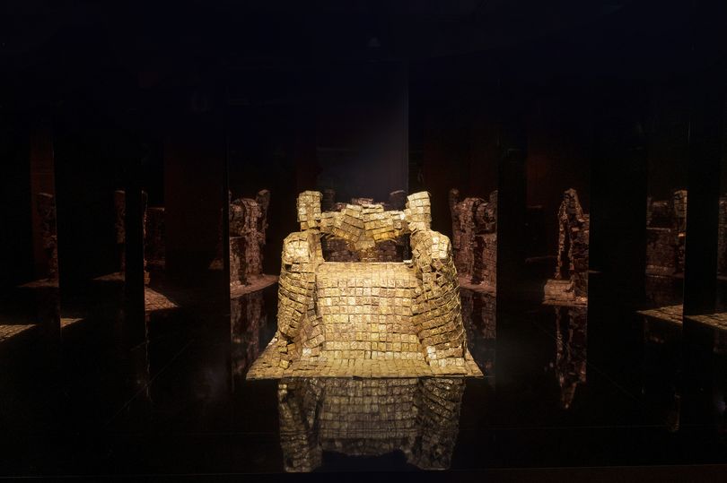 Scénographie avec, de Barbara Chase-Riboud, Cleopatra's chair (Le siège de Cléopâtre), 1994. Bronze.