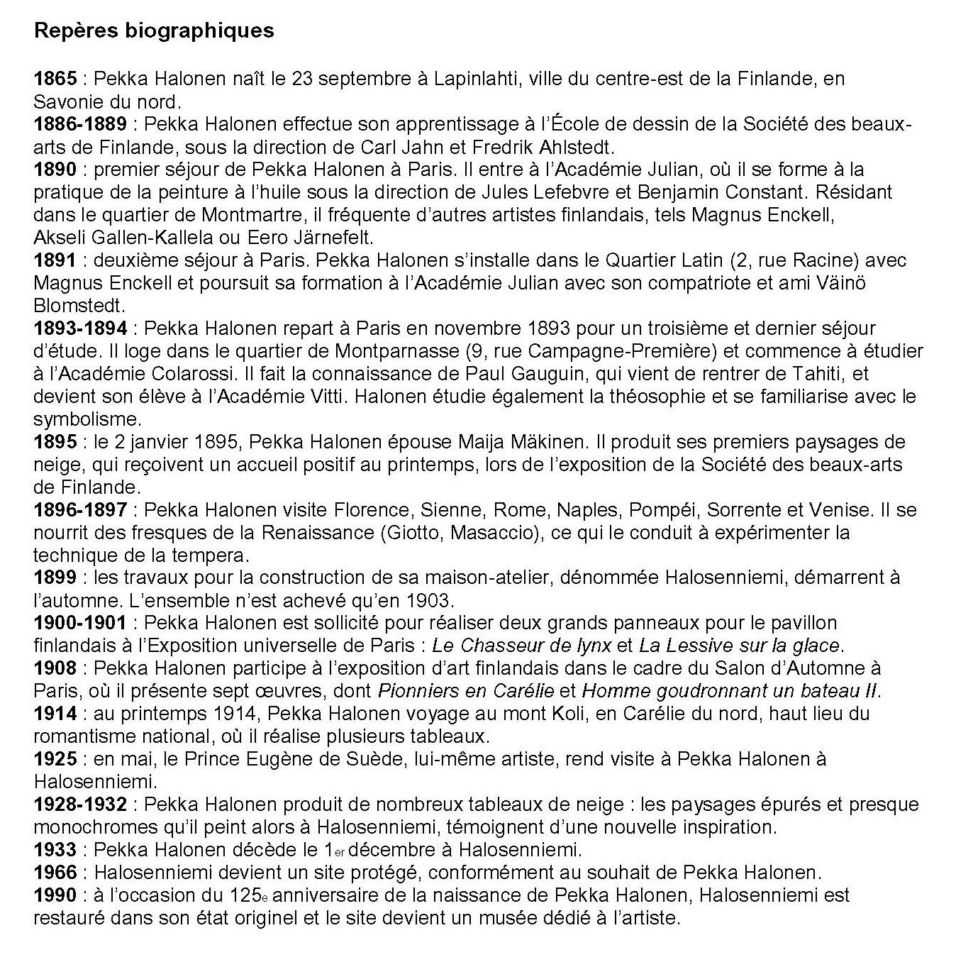Né à Lapinlahti, ville du centre-est de la Finlande, en Savonie du Nord, et issu du monde paysan, Pekka Halonen baigne dès son plus jeune âge dans cette terre primitive dont il n'aura de cesse de restituer l’authenticité. Il ancre son attachement à sa terre natale dans la construction d’une maison-atelier, Halosenniemi, le long du lac de Tuusula, au nord d'Helsinki. Inlassablement, il y peint le spectacle de la nature, au rythme des saisons et au gré des lumières. La symphonie majestueuse des neiges, qui fascine l'artiste, constitue son terrain d’expérimentation privilégié, qu’il poursuit jusqu’à l'abstraction. Il y écrit sa propre modernité, sans cesse renouvelée à la lumière des avant-gardes parisiennes - le japonisme, le pleinairisme, le synthétisme ou encore le fauvisme.