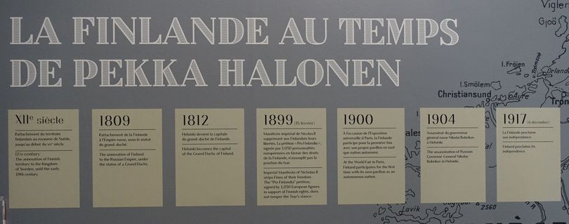 En 1900, lors de l’Exposition universelle de Paris, la Finlande figure pour la première fois avec son propre pavillon en tant que nation autonome. Cette participation revêt un enjeu très fort pour le peuple finlandais, dans un climat de forte tension avec la tutelle russe: le 15 février 1899, le tsar Nicolas II promulgue un manifeste impérial déniant aux Finlandais une partie de leurs libertés.