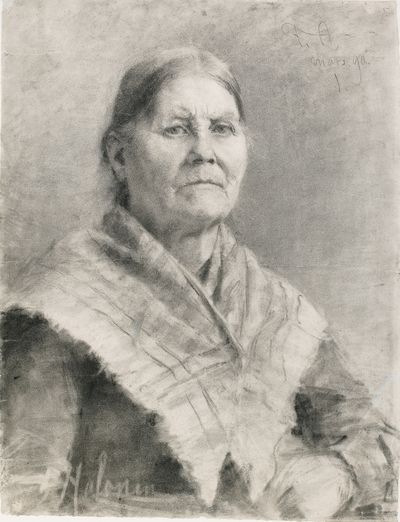 Pekka Halonen. Vieille Femme, 1890. Fusain sur papier. Helsinki, musée d’Art de l'Ateneum, galerie nationale de Finlande. |