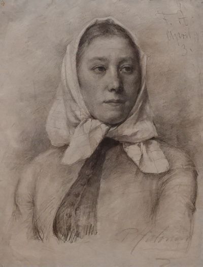 Pekka Halonen. Jeune fille au foulard, 1889. Fusain sur papier. Helsinki, musée d’Art de l'Ateneum, galerie nationale de Finlande. |